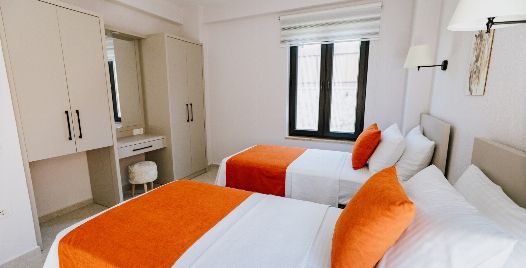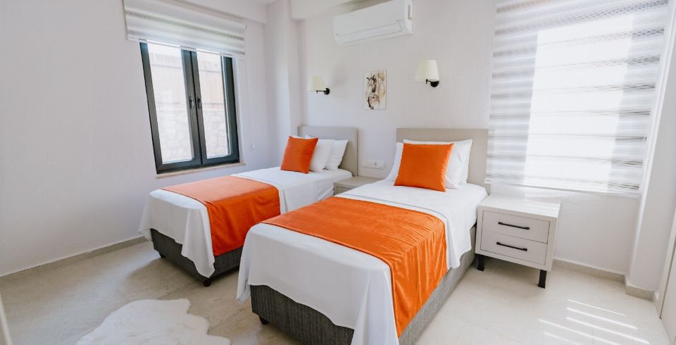 2. Yatak Odası : 2 adet tek kişilik yatak, klima, komodin, elbise dolabı, banyo ve lavabo bulunmaktadır.
