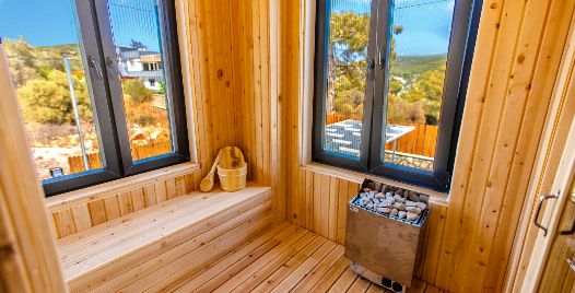 Havuz ve Bahçe : Çam ağaçları arasında, şemsiye, bahçe mobilyası, şezlong, mangal ve yemek masası bulunmaktadır.