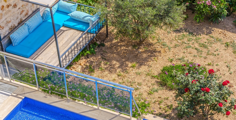 Bahçe : Villamızın bahçesinde özel yüzme havuzu, güneşlenmeniz için 6 adet şezlong, güneşlenme terası, 6 kişilik masa, oturma grubu, mangal keyfiniz için barbekü, güneş şemsiyesi bulunmaktadır.