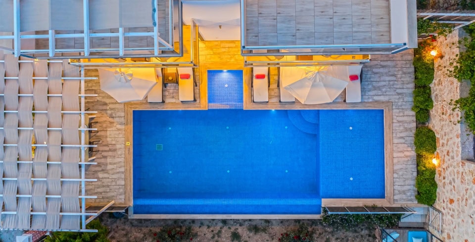 Havuz : Villamızın havuzu ise etrafı dışarıdan görülmeyecek şekilde korunaklı olup sizlere huzurlu ve keyifli havuz deneyimi sunmaktadır. Size özel muhafazakâr yüzme havuzu, şezlong keyfi ve şemsiye ile yazın en güzel günlerinde sizleri bekliyor.