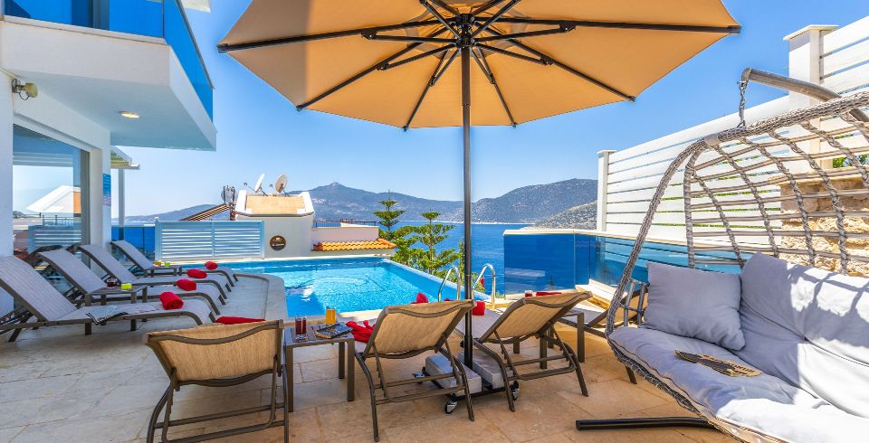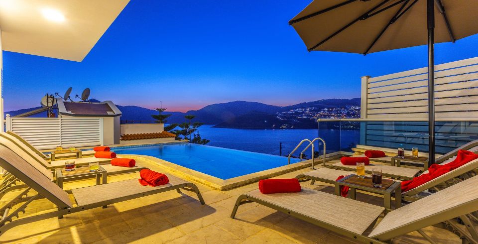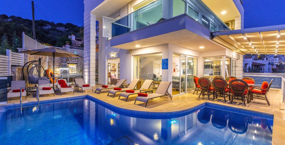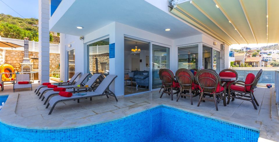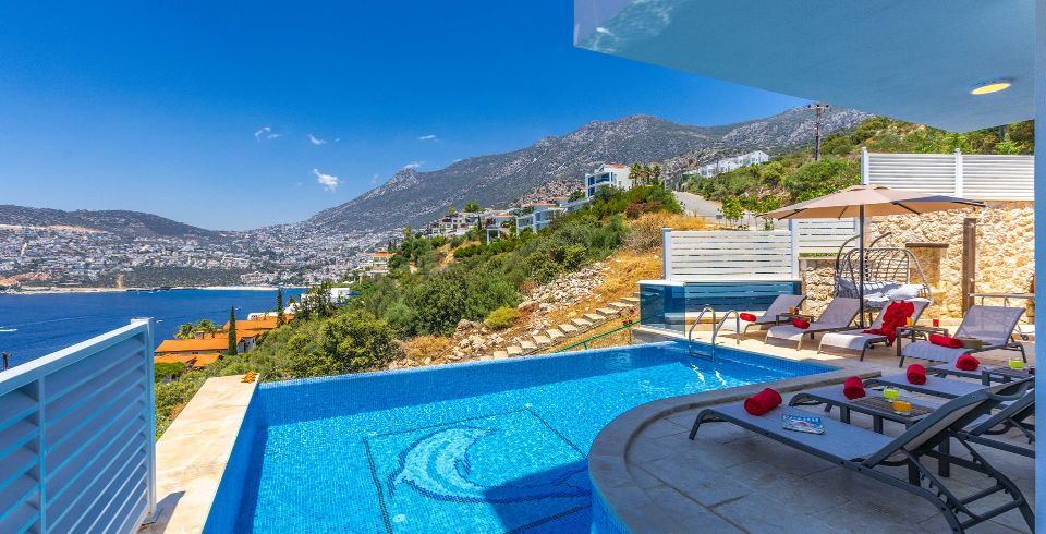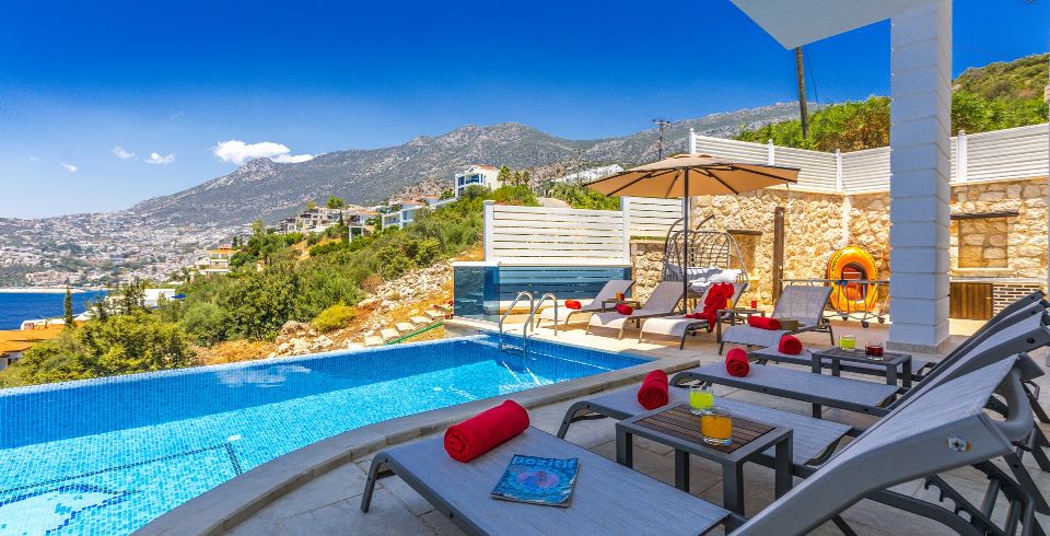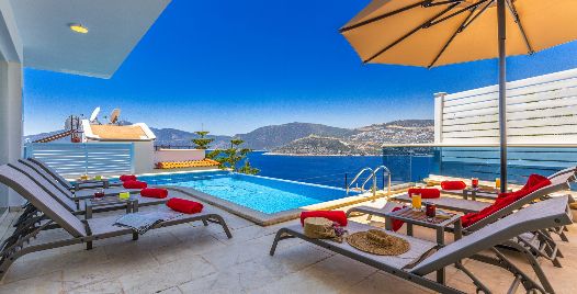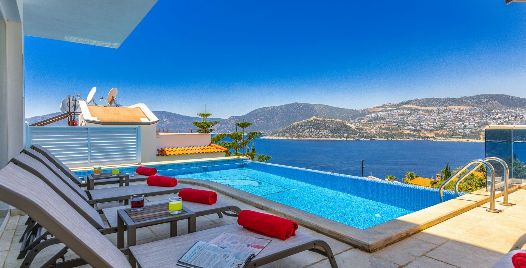 Kalkan Kışla mevkisin de bulunan 4 yatak odalı muhteşem deniz ve doğa manzaralı villamız 8 kişilik konaklama kapasitesine sahip olup geniş aileler ve arkadaş grupları için son derece uygundur. Villamız ilk kiralama sezonuna 2017 yılında başlamış bulunmakta olup tüm eşyalar yenidir. Villamızın bulunduğu konumdan kışla ve mahal beachlere yürüyerek ulaşım sağlanmaktadır. Ayrıca villamıza 750 m mesafede restoran ve market bulunmakta olup ulaşım kolay bir şekilde sağlanmaktadır. Kalkan dalaman havaalanına 125 km mesafede bulunmaktadır.