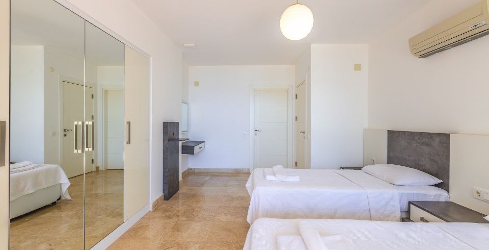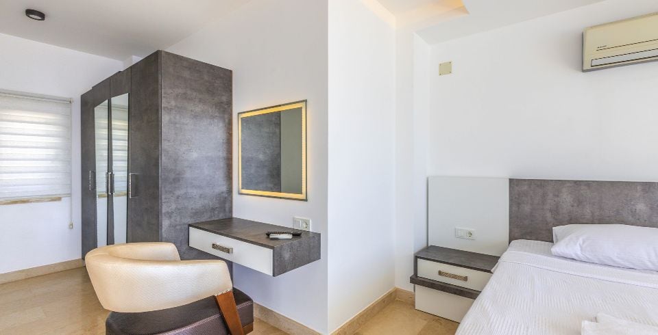 4. Yatak Odası : Süit yatak odası tek kişilik 2 yatak, klima, makyaj masası, komodin, elbise dolabı banyo ve lavabo bulunmaktadır.
