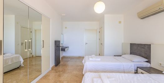 3. Yatak Odası : Süit yatak odası tek kişilik 2 yatak, klima ,elbise dolabı, makyaj masası, komodin banyo ve lavabo bulunmaktadır.