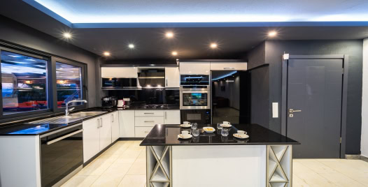 Mutfak : Modern dizayna sahip kendinizi evinizin mutfağında hissedeceğiniz Amerikan mutfak içerisinde buzdolabı, bulaşık makinesi, ocak, fırın, mikrodalga fırın, su ısıtıcısı, kahve makinesi, yemek masası, yemek takımı ve yemek pişirme araç gereçleri yer almaktadır.