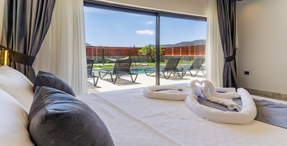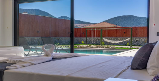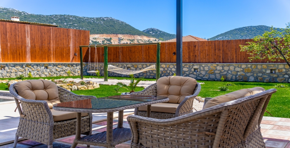 Villa Eylül, sizlere lüks ve konforu bir araya getiren muhteşem bir tatil deneyimi sunmaktadır. Villa, muhteşem doğa manzarasıyla Kalkan Bezirgan bölgesinde yer almaktadır. Geniş bir bahçeye sahip olan villa, yeşillikler içinde, şık mobilyaları ve dinlenme alanlarıyla dikkat çekmektedir. Geniş bir yüzme havuzu, güneşlenme terası ve barbekü alanı bulunmaktadır. Modern tarzda dekore edilen salon, şık mobilyalarla donatılmıştır. Ayrıca, geniş yatak odaları ve lüks banyolarıyla konforlu konaklama imkanı sunmaktadır. Gözlerden uzakta doğa ile baş başa kalabileceğiniz villamızın yatak odasında bir adet jakuzi de bulunmaktadır.