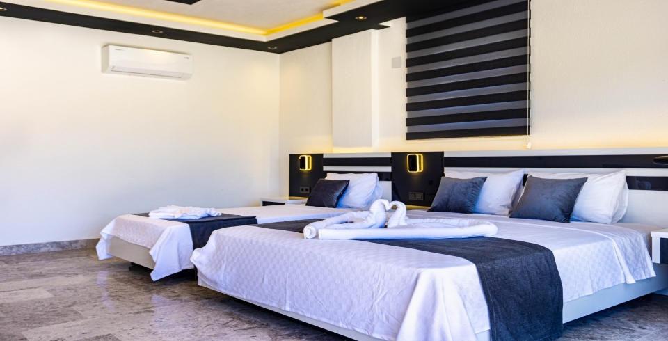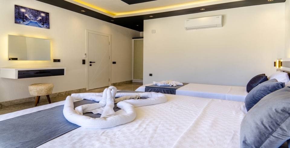 2. Yatak Odası: 1 adet tek kişilik, 1 adet çift kişilik yatak, klima, elbise dolabı, komodin, makyaj masası, banyo ve tuvalet bulunmaktadır.