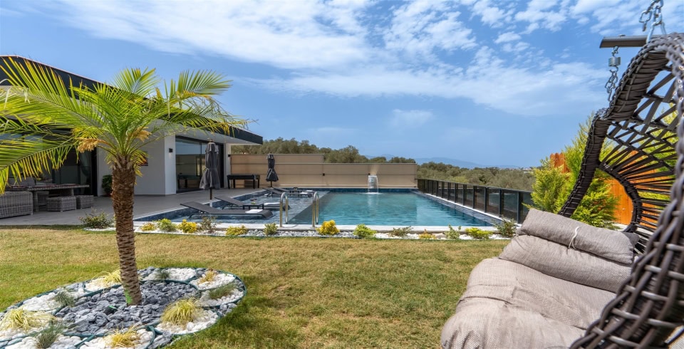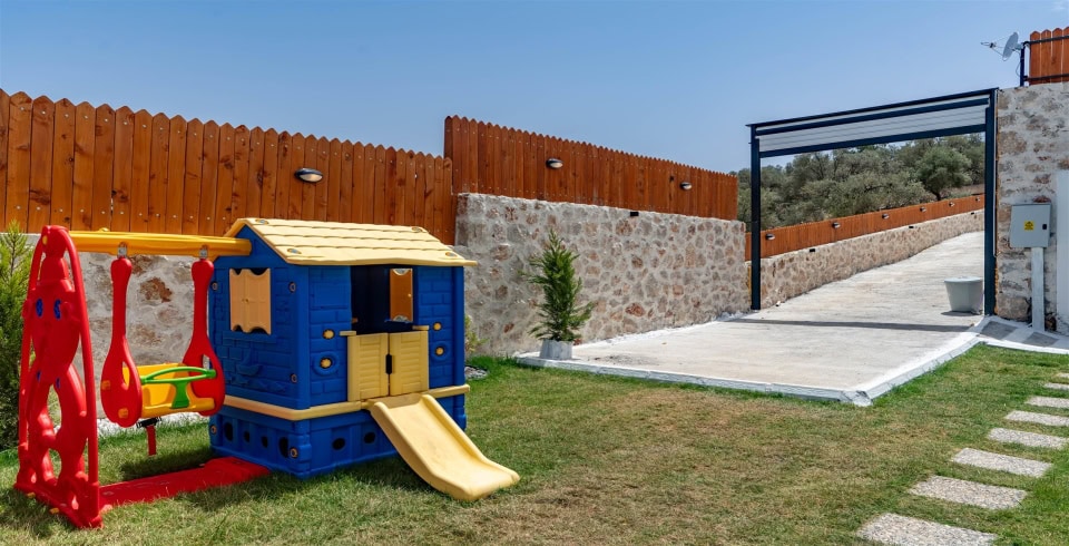Havuz ve Bahçe : Villamızın bahçesinde korunaklı yüzme havuzu,şezlong,güneş şemsiyesi,oturma grubu,yemek masası ve sandalyeleri,barbekü ve langırt bulunmaktadır.