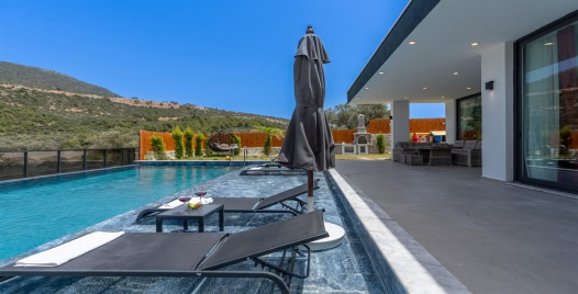 Villa Eylül Exclusive, Kalkan'ın Çavdır bölgesinde yer alan 2 yatak odalı ve 4 kişilik kapasitesiyle hem balayı çiftleri hem de çekirdek aileler için tasarlanmış lüks bir tatil villasıdır. Korunaklı özel havuzu, jakuzili ana yatak odası ve geniş bahçesiyle hem mahremiyet hem de konfor ön planda tutulmuştur. Modern dekorasyonu, ferah yaşam alanları ve doğa manzarasıyla keyifli bir tatil vadeder.