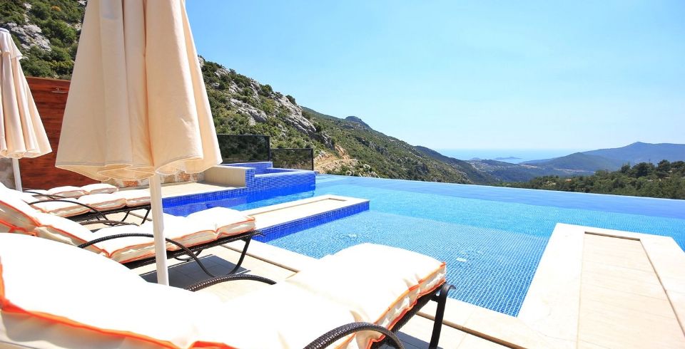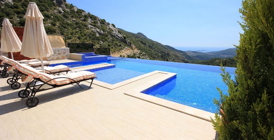 Kiralık Yazlık Villa Falez, Kalkan İslamlar bölgesinde muhteşem bir manzaraya karşı konumlanan havuzu tam korunaklı villamızdır. Panoramik deniz ve doğa manzarasına sahip villamızın, havuz terası da ferah ve geniş olarak tasarlanmıştır. Misafirlerimizin rahatlığı düşünülerek tasarlanan villamız da, konforlu mobilyalar kullanılmıştır. Tatilde ihtiyacınız olabilecek her şey Villa Falez de sizler için düşünüldü.