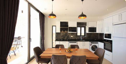 Mutfak: Geniş Amerikan mutfak, klima, yemek masası, buz dolabı, bulaşık makinası, çamaşır makinası, ankastre fırın, 4'lü ankastre ocak, ketil, ekmek kızartma, tost makinası bulunmaktadır.