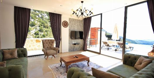 Salon: Villamızın Salonunda oturma grubu, TV, uydu, internet, klima, şömine ve havuz terasına çıkış yapılabilmektedir.