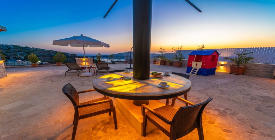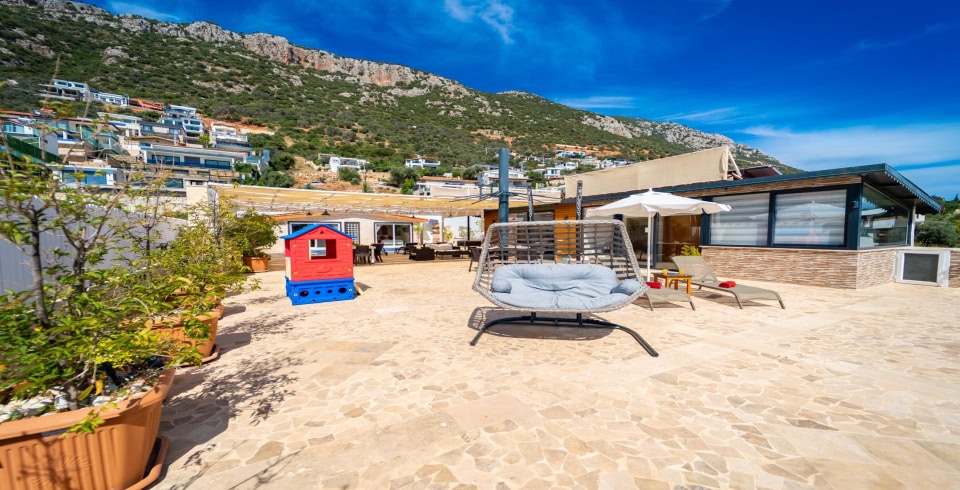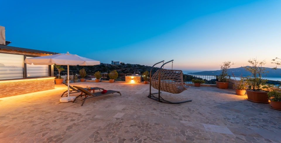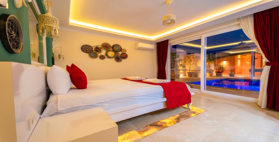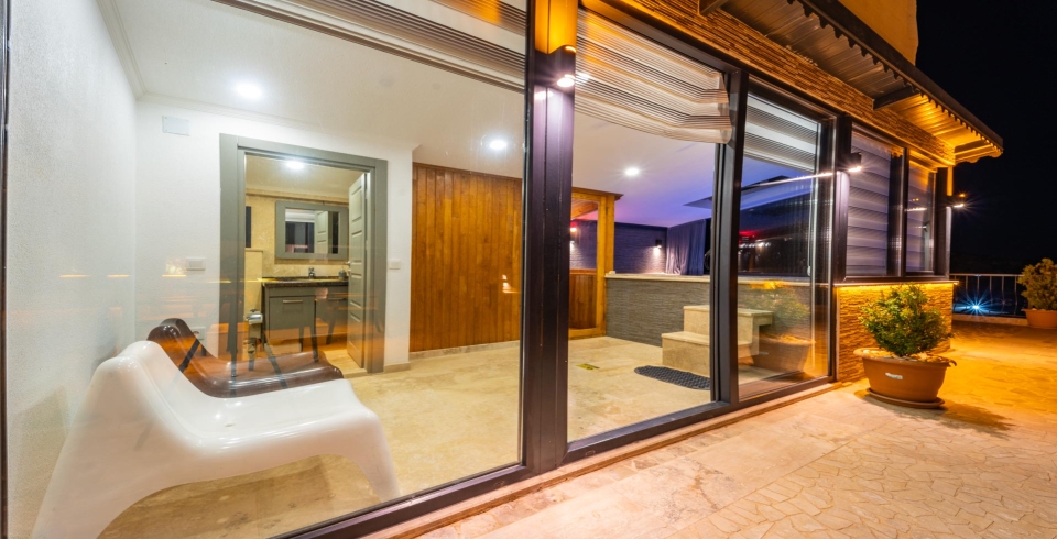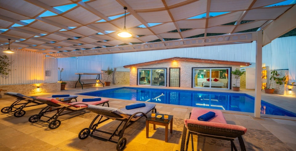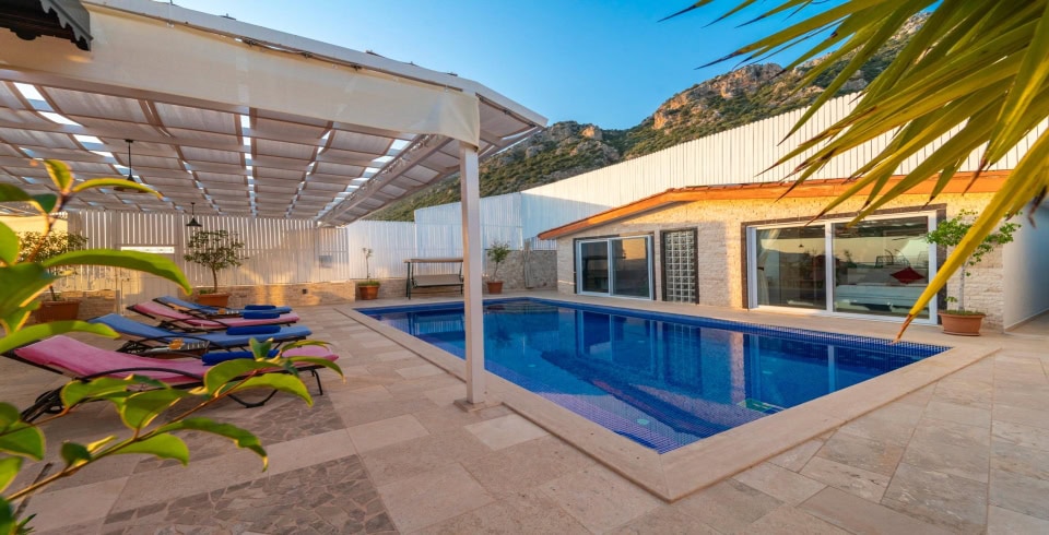 Kalkan Kördere bölgesinde bulunan Muhafazakar Özel yüzme havuzlu villamızdır. Villamız korunaklı havuzlu olum gizliliğe önem veren aileler ve balayı çiftlerimiz için son derece uygun bir tercih olacaktır. 3 yatak odalı 6 kişi konaklama kapasitesine sahiptir. 1 yatak odasında jakuzi bulunmaktadır. Açık mutfak salonumuz bulunmakta olup villamızın havuz terasında mangalımız bulunmaktadır. Yazlık villamızın bulunduğu konumdan kalkan manzarası gözükmektedir. Kalkan merkeze özel aracınız ile 5 dk. mesafede bulunmakta olup ulaşım gayet kolaydır.