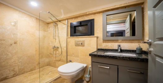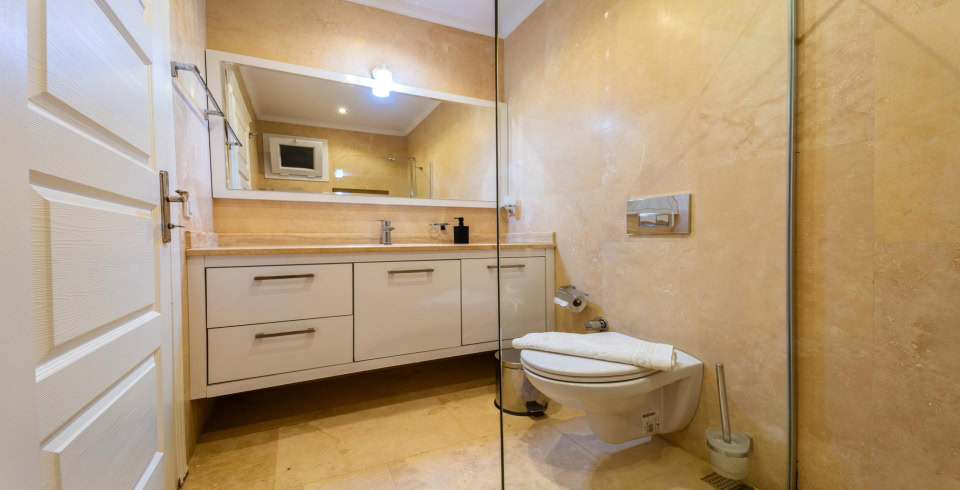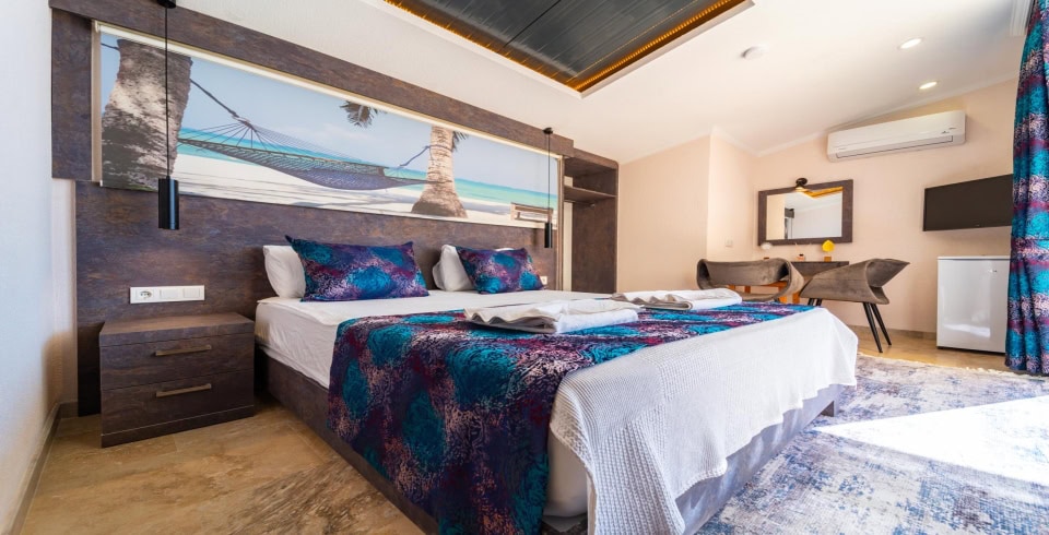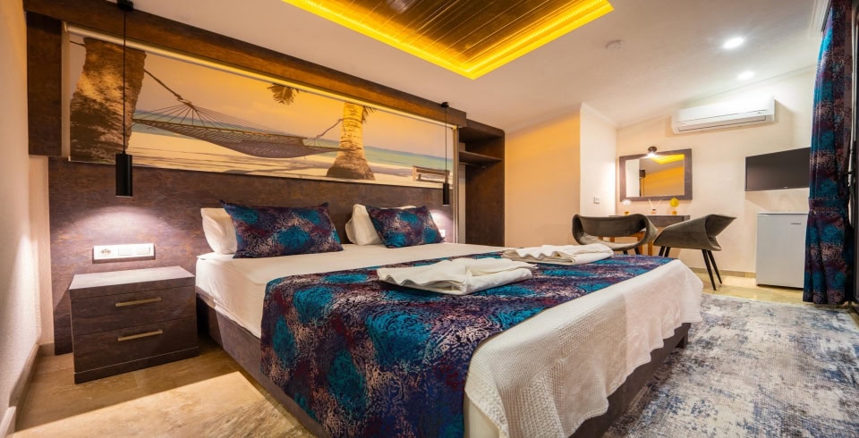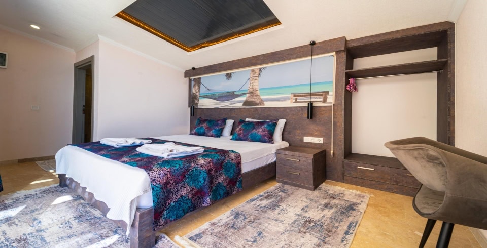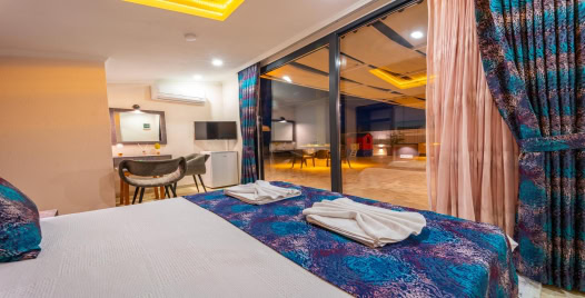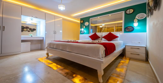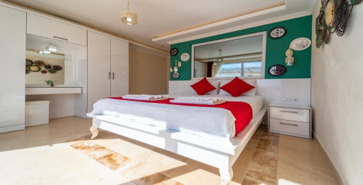 3. Yatak Odası : çift kişilik yatak, komodin, klima, makyaj masası, elbise dolabı, banyo ve tuvalet bulunmaktadır.