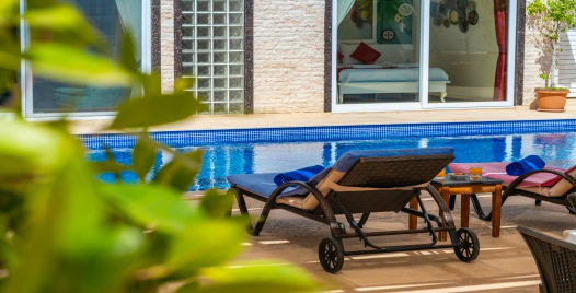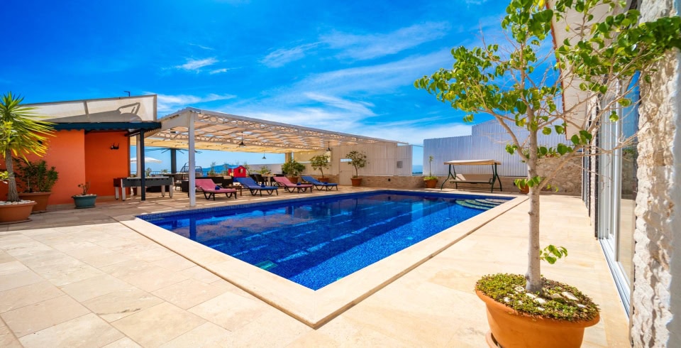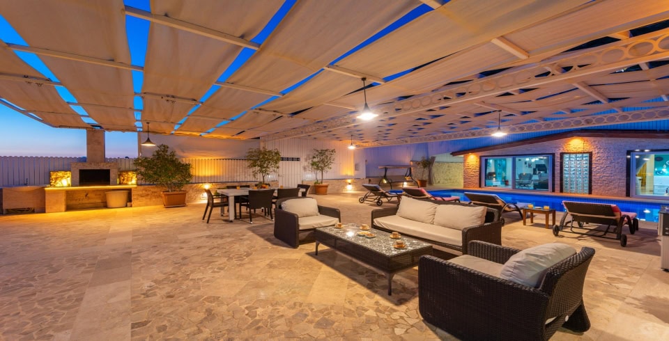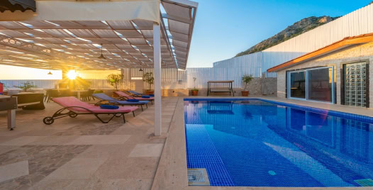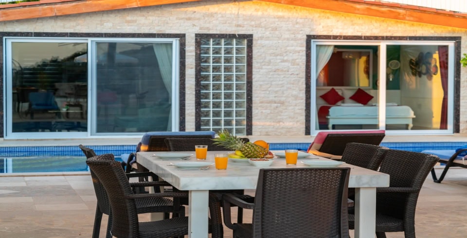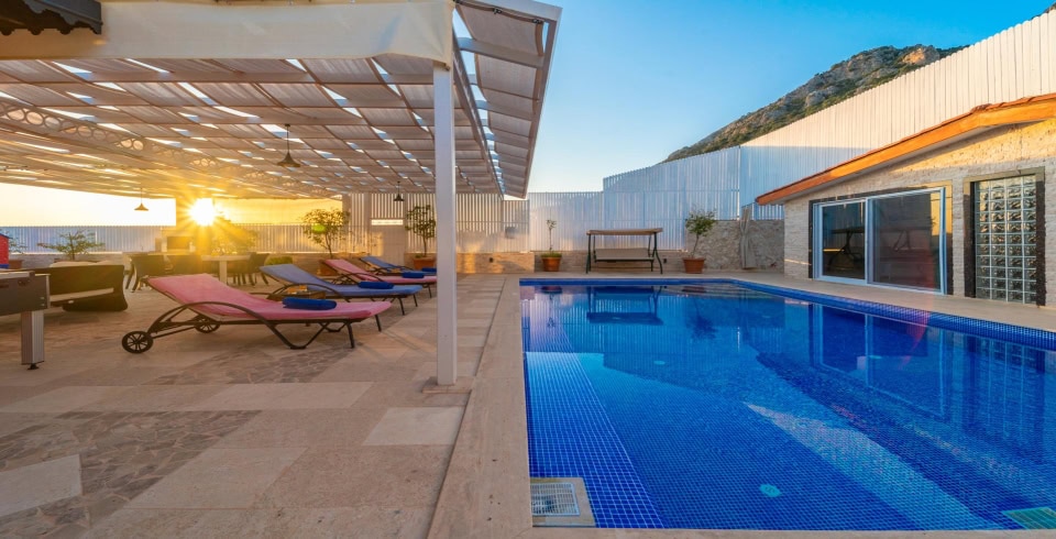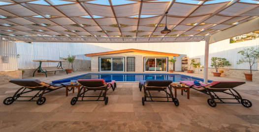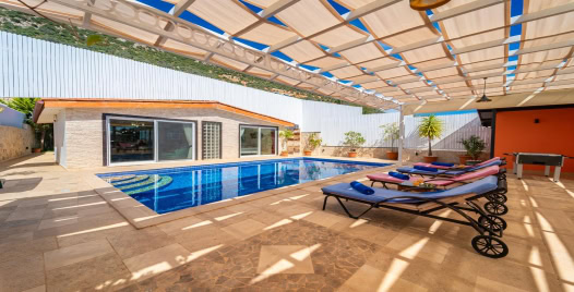 Havuz ve Bahçe : Villamızın özel yüzme havuzun muhafazakar olup dışardan kesinlikle görünmemektedir. Şezlong, şemsiye, yemek masası, barbekü bulunmaktadır.
