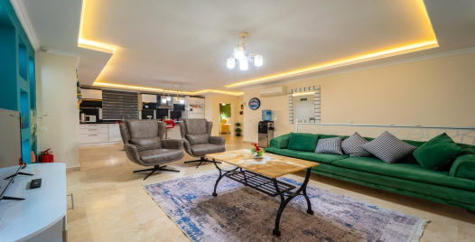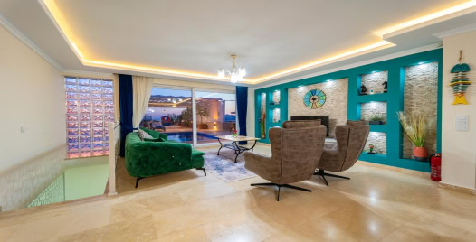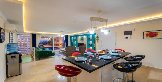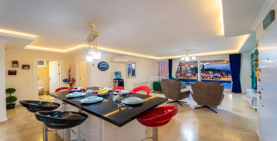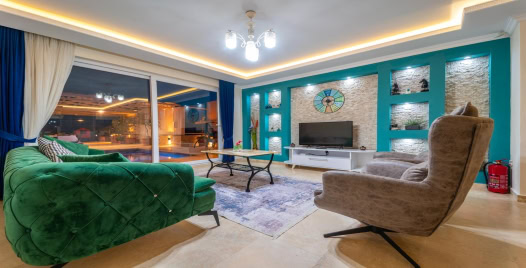 Salon : Villamızın salonunda oturma grubu, TV, internet, yemek masası, sehpa bulunmaktadır.