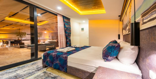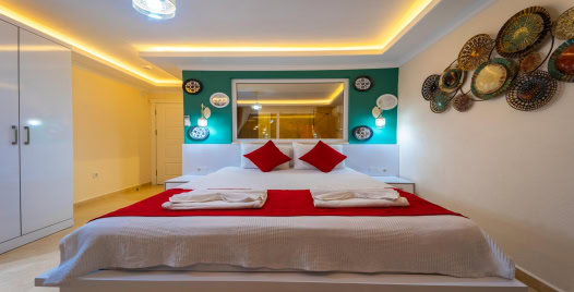 1. Yatak Odası : Çift kişilik yatak, klima, komodin, makyaj masası, jakuzi, banyo ve tuvalet bulunmaktadır.