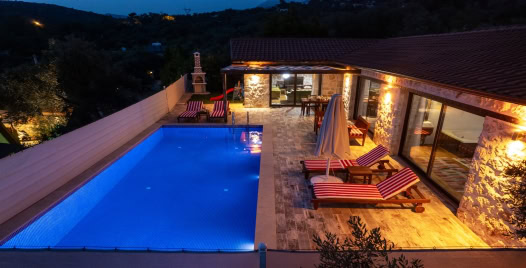 Havuz ve Bahçe : Villamızın havuz terasında şezlong, yemek masası, oturma grubu, barbekü,salıncak, özel yüzme havuzu ve çocuk oyun alanı bulunmaktadır.
