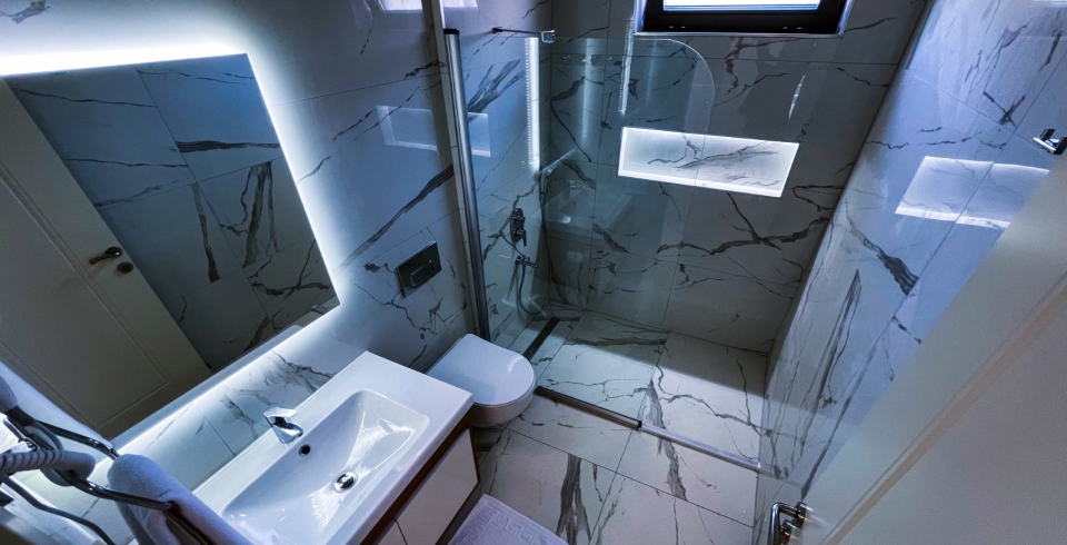 Salon : Salon içerisinde oturma grubu, TV, klima, sehpa bulunmaktadır. Havuz terasına çıkış yapılabilmektedir.
