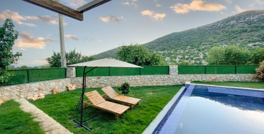 Havuz ve Bahçe : Bahçe içerisinde özel yüzme havuzu, şezlonglar, güneş şemsiyesi, bahçe mobilyaları, salıncak, barbekü bulunmaktadır.