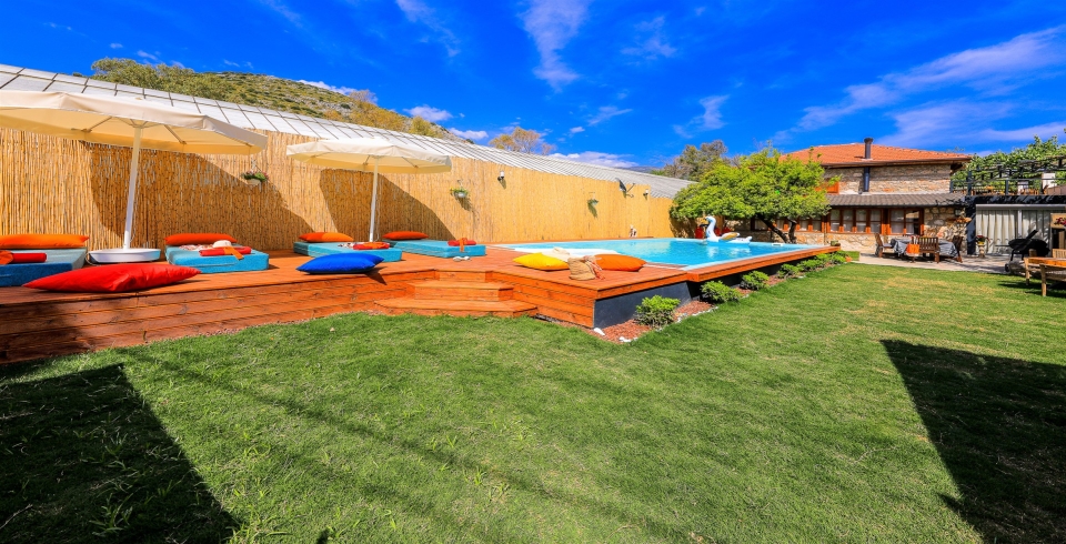 Kalkan Yeşilköy bölgesinde bulunan villa Fırnaz Taş Evi 2 yatak odalı olup 4 kişilik kapasiteye sahiptir. Geniş bahçesi bulunan villamız çocuklu aileler için gayet uygun bir seçimdir. Villamızın havuz terası dışarıdan gözükmemektedir.