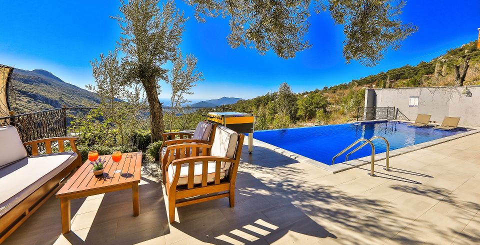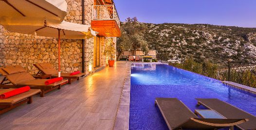 Kalkan İslamlar bölgesinde konumlanmış ahşap ve taş işlemeli kiralık yazlık villamız muhteşem panoramik deniz ve doğa manzarasına sahiptir. Kalkan merkeze 10 DK mesafede bulunup yaz aylarında şehir gürültüsü ve iş stresinden sıkılanlar için muhteşem bir tatil alternatifi olacaktır. Tüm aile bireylerinin bir arada tatil yapabileceği kadar büyük olan villamız kalabalık aileler içinde yakınında diğer villa seçeneklerimiz bulunmaktadır. Villamızın bulunduğu konum itibari ile markete ve restaurantlara yakın bir konumda bulunmaktadır.
