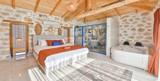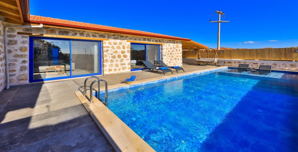Kiralık yazlık villamız Kaş Patara bölgesinde konumlanmıştır. Dünyaca ünlü Patara Plajı'na yalnızca 4 km uzaklıkta bulunan, yapımı 2022 yılı nisan ayında tamamlanan korunaklı, Jakuzili balayı villasıdır. Taş ve ahşap mimari kullanılarak dizayn edilmiştir .Villanın her iki yatak odasında, jakuzi bulunmaktadır. Son derece zevkli döşenmiş Villa Flower Blue , muhafazakar, aile ve çiftler için ideal bir seçimdir. Jakuzili bu villamız romantik keyifli bir tatil isteyen, balayı çiftleri için ideal bir seçim olacaktır.