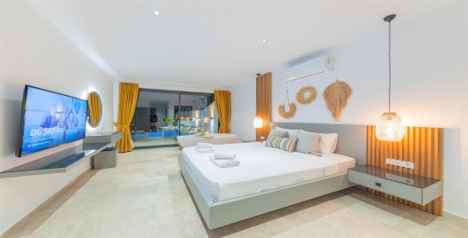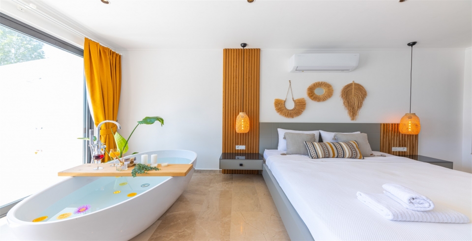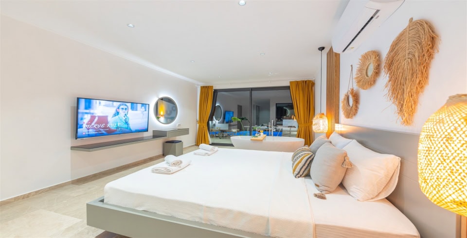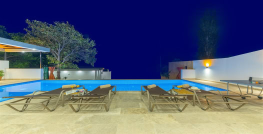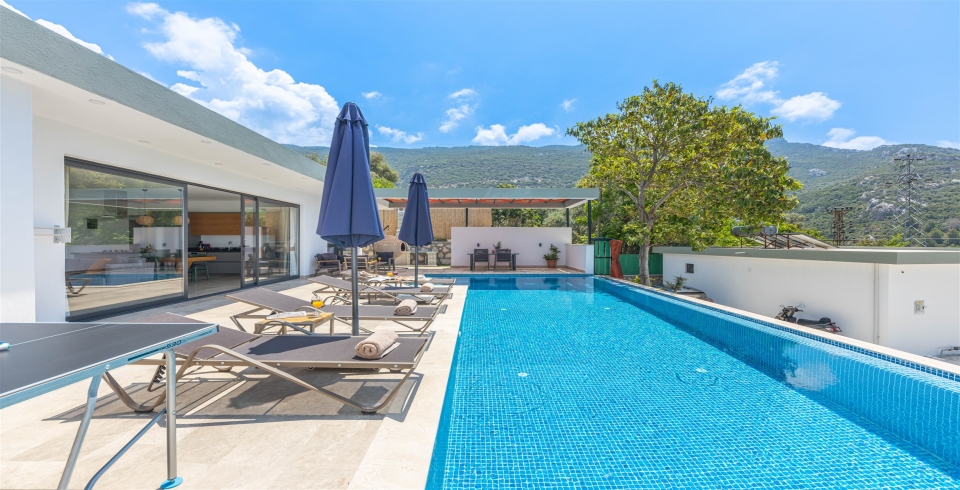Villa Gala 3, Kalkan İslamlar bölgesinde yer alan 2 yatak odalı ve 4 kişilik konaklama kapasitesine sahip kiralık balayı villasıdır. Villamızın havuzu ve terası korunaklı olup muhafazakar misafirlerimiz için idealdir. Modern eşyalarla tasarlanmış villamızda konforun tadını sevdiklerinizle çıkarabilirsiniz. Villada keyifli zaman geçirebilmeniz için masa tenisi bulunmaktadır.
