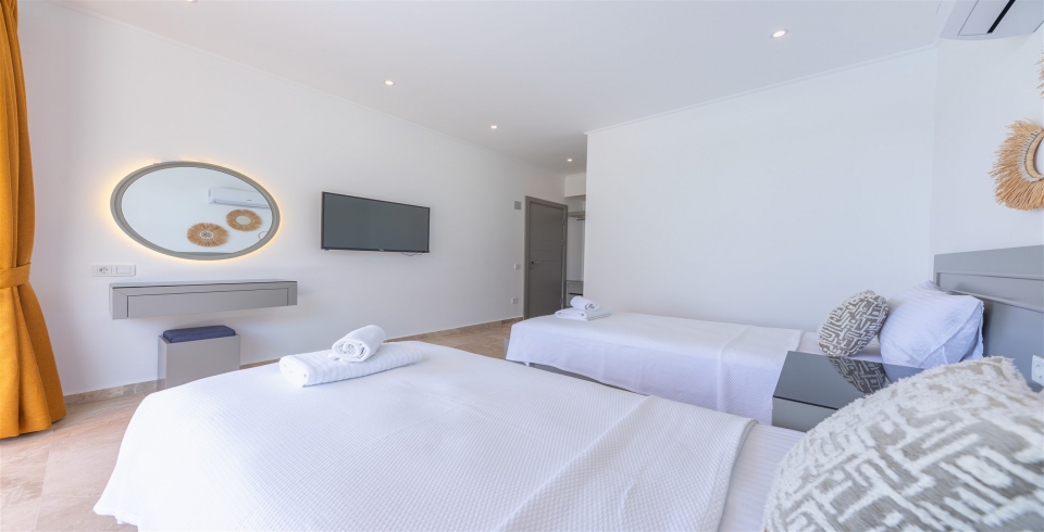 2. Yatak Odası :İki adet tek kişilik yatak, klima, elbise dolabı, makyaj masası, komodin banyo ve tuvalet bulunmaktadır.