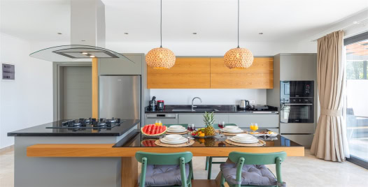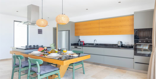 Mutfak : Villamızın mutfağında buzdolabı bulaşık makinası, çamaşır makınası,4'lü ocak, kettle, 4 kişilik yemek takımı bulunmaktadır.