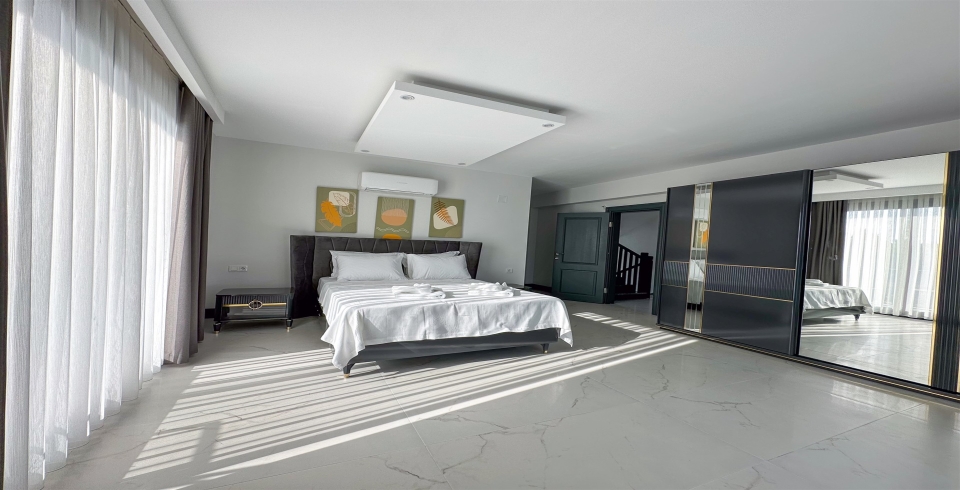1.Yatak Odası: Çift kişilik yatak, Komodin, Klima, Elbise dolabı, Şifonyer, Banyo ve Balkon bulunmaktadır. (1. Katta)