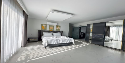 4.Yatak Odası: Çift kişilik yatak, Komodin, Klima, Elbise dolabı, Banyo ve Balkon bulunmaktadır. (Teras Katta)