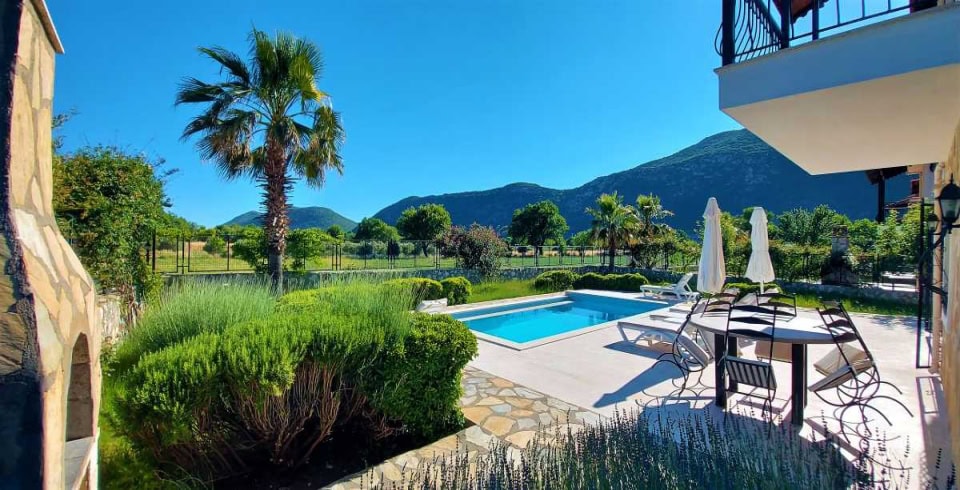 Havuz ve Bahçe : Havuz terası korunaklı olup dış taraftan gözükmemektedir. Villamızın havuz terasında şezlong, şemsiye, barbekü ve bahçe yemek masası bulunmaktadır.