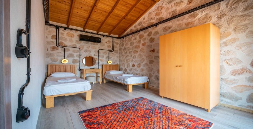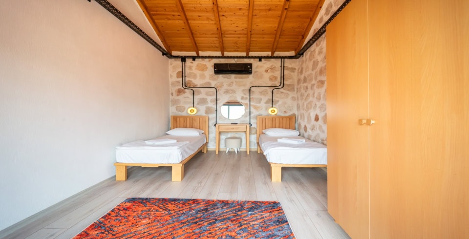 2. Yatak Odası : 2 adet tek kişilik yatak, klima, elbise dolabı, makyaj masası, komodin bulunmaktadır.