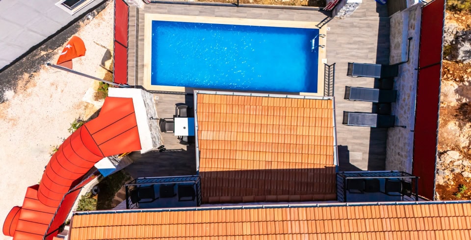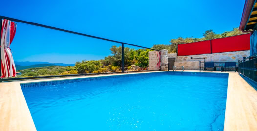 Havuz ve Bahçe : Özel yüzme havuzu bulunan villamızın havuz terasında şemsiye, şezlong, barbekü, pergola, oturma alanı, yemek masası ve sandalyeler bulunmaktadır.