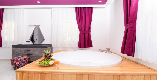 1.Yatak Odası: 1 adet çift kişilik yatak, elbise dolabı, komodin, klima, makyaj masası, jakuzi, banyo ve lavabo bulunmaktadır.