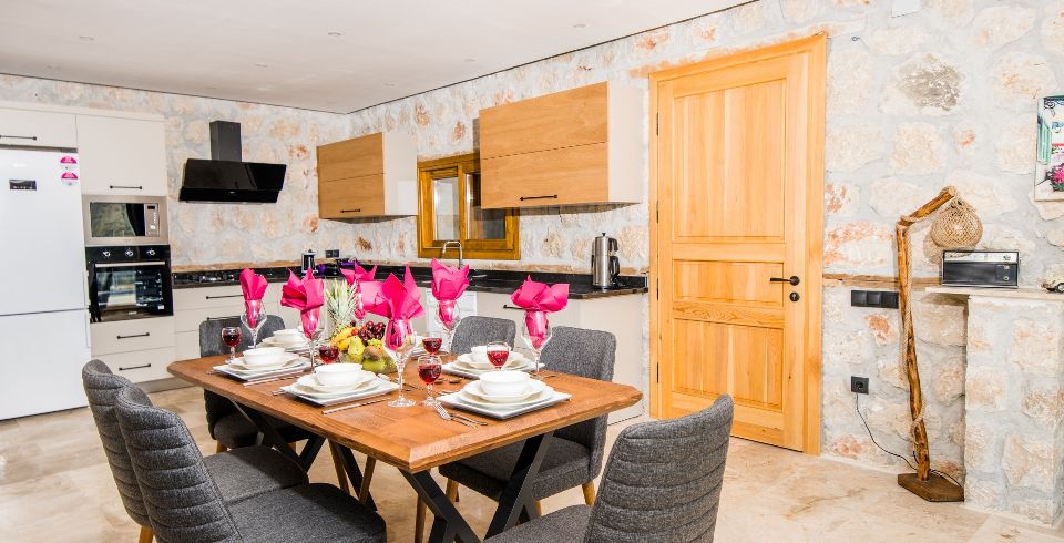 Mutfak: Villamızın mutfağında buzdolabı bulaşık makinası, çamaşır makinası, 4'lü ocak, kettle, yemek takımı bulunmaktadır.