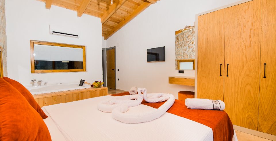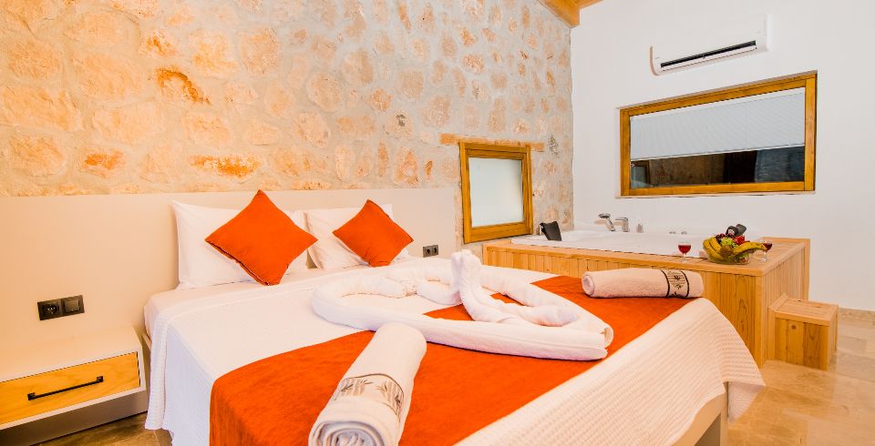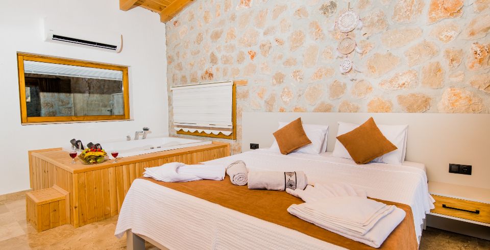 2: Yatak Odası: Çift kişilik yatak, klima, jakuzi, komodin, elbise dolabı, makyaj masası, TV, banyo ve tuvalet bulunmaktadır.