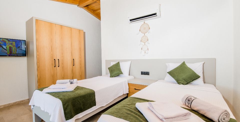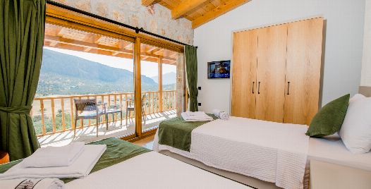 3: Yatak Odası: 2 adet kişilik yatak, klima, komodin, elbise dolabı, makyaj masası, TV, banyo ve tuvalet bulunmaktadır.