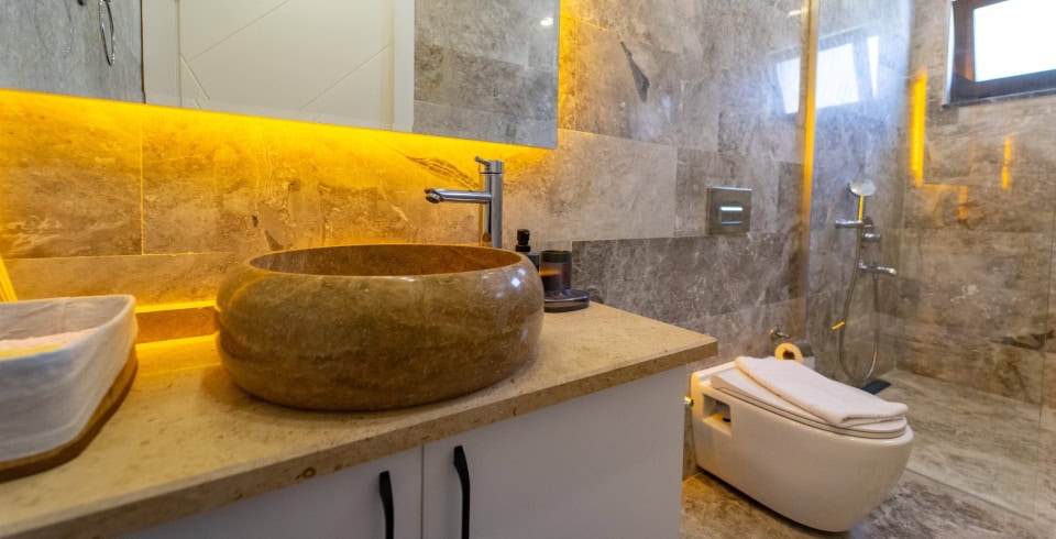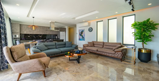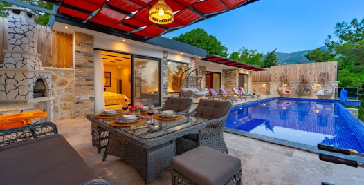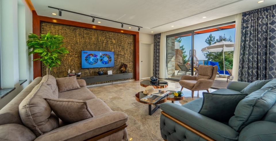 Salon: Villamızın salonunda konforlu oturma grubu, klima, TV, internet, uydu alıcı, yemek masası, sehpa bulunmaktadır.