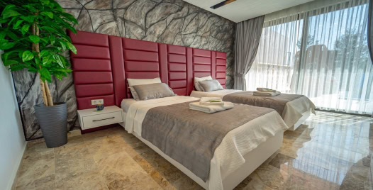 2. Yatak Odası: 2 adet tek kişilik yatak klima, komodin, elbise dolabı, makyaj masası, banyo ve tuvalet bulunmaktadır.