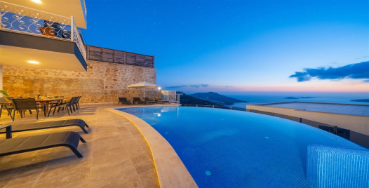 Kalkan Kızıltaş Mevkisin de bulunan 5 yatak odalı 10 kişilik lüks tatil villamız göktepe muazzam yapısı ve harika manzarası ile misafirlerimizi büyüleyen harika bir tasarımdır. Yapımı 2013 yılında tamamlanan ve onlarca misafir ağırlayan villamızın tüm yatak odalarından deniz ve kalkan manzarası gözükmektedir. Villamızın havuz başında güneşlenirken muhteşem manzarayı izleme keyfine varacaksınız.