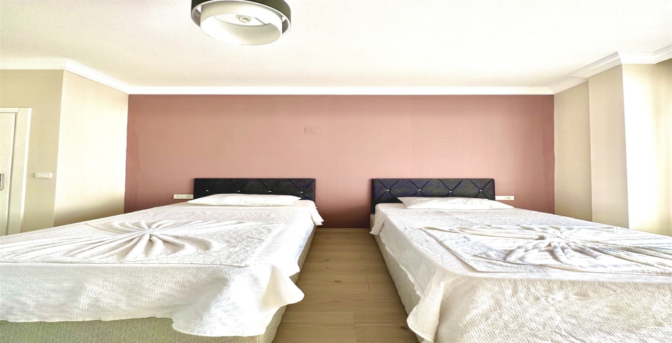 2. Yatak Odası : 2 adet tek kişilik yatak, komodin, klima, banyo, elbise dolabı ve lavabo bulunmaktadır.