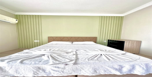 1. Yatak Odası : Çift kişilik yatak, klima, komodin, elbise dolabı, banyo ve lavabo bulunmaktadır.