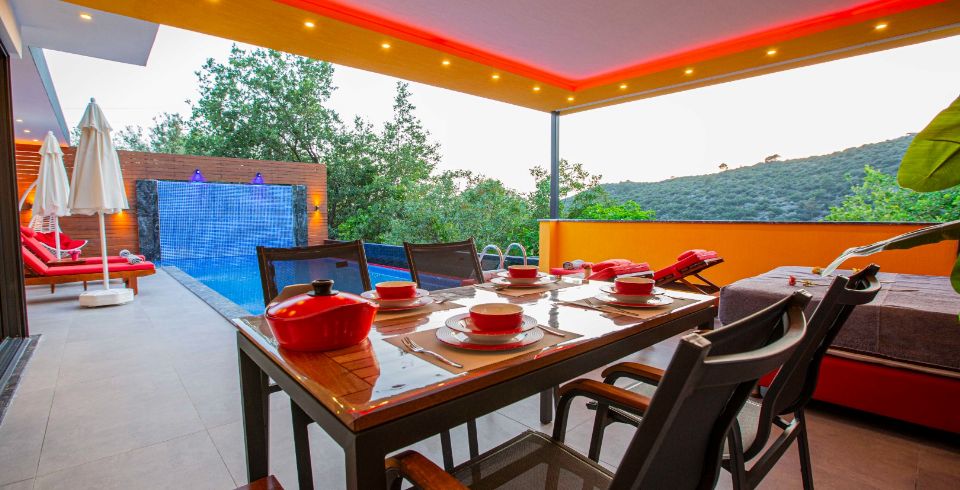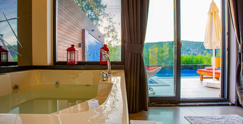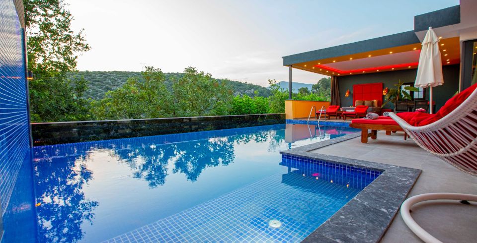Kalkan’ın yemyeşil Üzümlü bölgesinde yer alan Villa Gold Premium, balayı çiftleri ve sakinlik arayan küçük aileler için tasarlanmış özel bir tatil villasıdır. Doğanın ortasında, kuş seslerinin eşlik ettiği huzurlu atmosferi ve lüks tasarımıyla villa, romantik ve konforlu bir konaklama sunar. Hem mahremiyete önem veren misafirler hem de şehirden uzaklaşıp doğayla baş başa kalmak isteyenler için ideal bir seçimdir.
