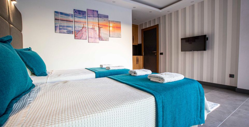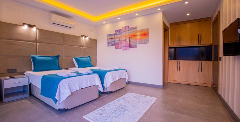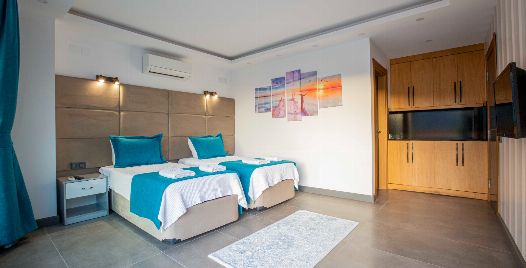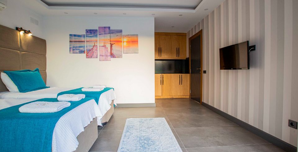 2. Yatak Odası : Tek kişilik iki adet yatak, elbise dolabı, komodin, klima, banyo ve tuvalet bulunmaktadır.