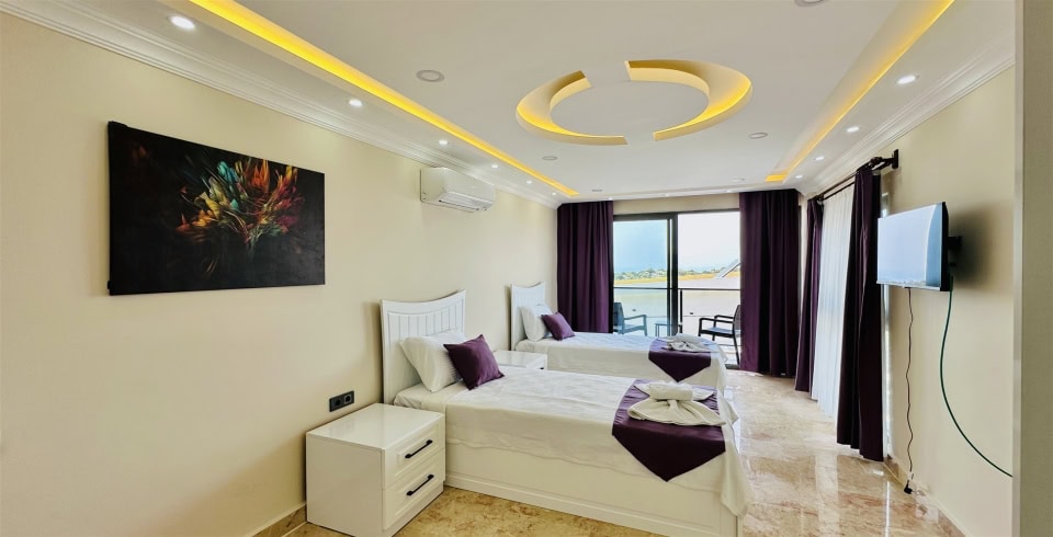 4. Yatak Odası : 2 adet tek kişilik yatak, klima, komodin, balkon, TV, banyo ve lavabo bulunmaktadır.