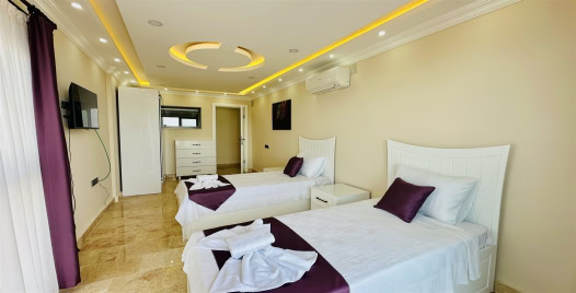 3. Yatak Odası : Çift kişilik yatak, komodin, klima, balkon, TV, makyaj masası, banyo ve lavabo bulunmaktadır.