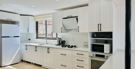 Mutfak : Modern Amerika mutfağımızda yemek masası, buzdolabı, mikrodalga fırın, 4’lü ocak,, elektrikli su ısıtıcısı, kahve makinası, çatal-bıçak takımı, tencere-tava takımı bulunmaktadır.