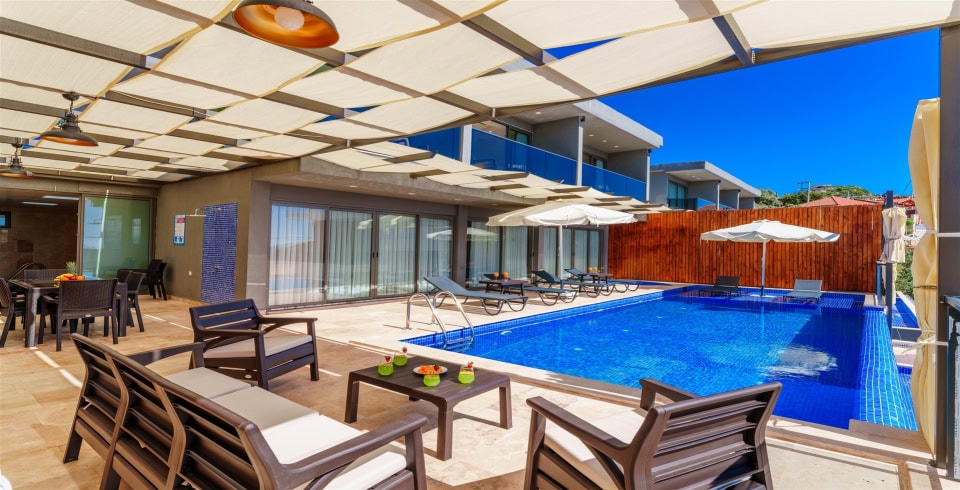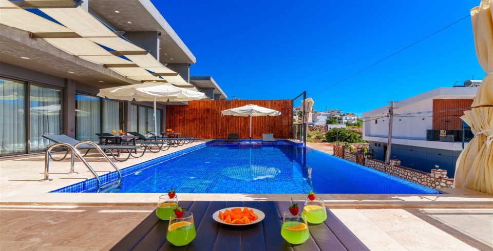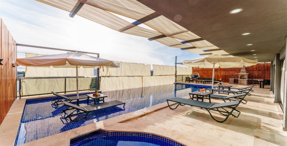Villa Grand Emora 2, Kalkan Kördere bölgesinde yer alan 2 katlı, 4 yatak odalı, 8 kişi konaklama kapasitesine sahip, sauna ve hamamın da yer aldığı villamız özenle dizayn edilmiş olup kalabalık aileler ya da arkadaş grupları için en ideal bir seçim olacaktır. 11 metrelik geniş havuza sahip olmanın yanı sıra kapalı ısıtmalı iç havuzu da kış ayları için harika bir ayrıcalık sağlamaktadır.