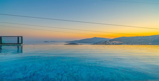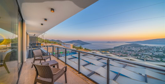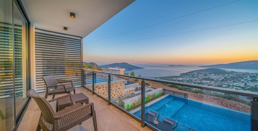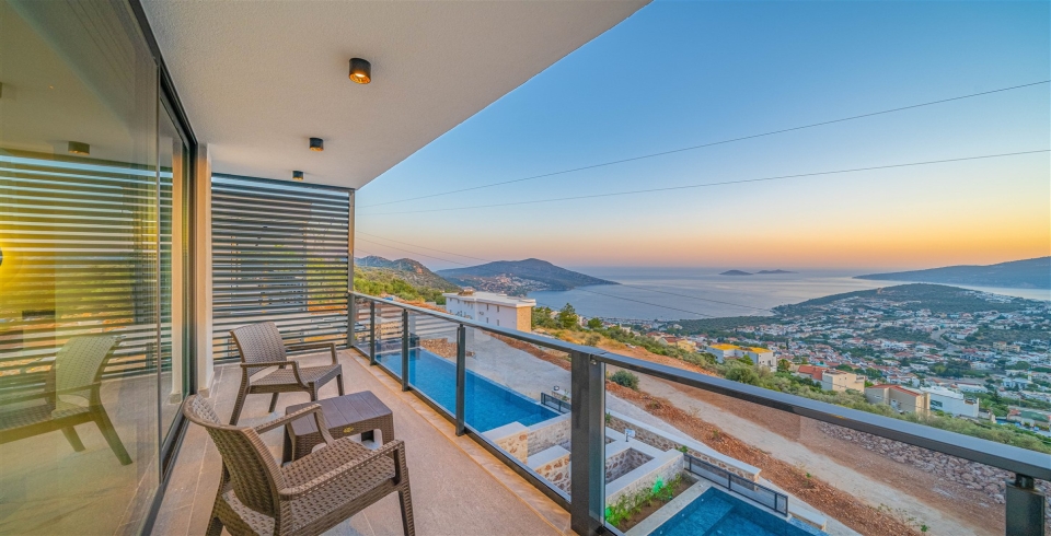 Villanın dış alanı, geniş güneşlenme terası, jakuzili özel havuz, şezlonglar, oturma alanı, barbekü köşesi ve açık mutfak ile donatılmıştır. Panoramik Kalkan manzarasına karşı gün batımını izlemek, tatilin en unutulmaz anlarından biri olur. Günlük havuz ve bahçe bakımı düzenli olarak yapılmaktadır.